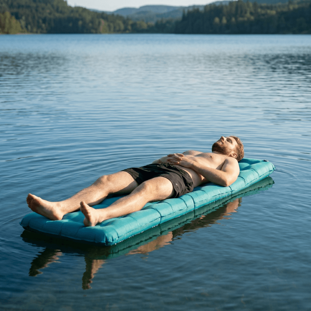 Hergestellt aus extrem reißfestem 40D-Nylon, lacht diese Matte über spitze Steine, rauen Sand oder feuchten Waldboden. Sie ist vollständig wasserdicht und verwandelt sich an heißen Tagen in die perfekte Liegeinsel fürs Wasser. Einmal kurz abwischen, und sie ist sofort trocken und bereit für die Heimreise.