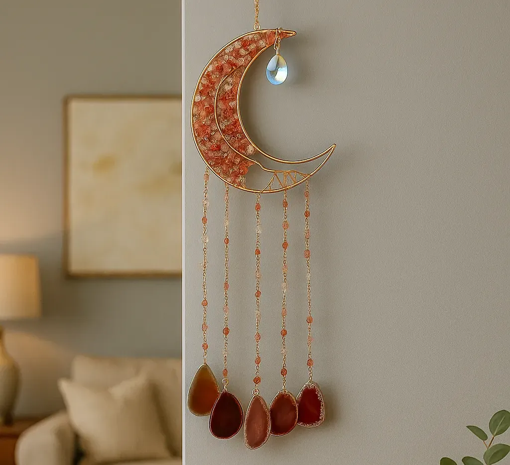 - Hochwertige Materialien: Gefertigt aus robustem Metallrahmen, stabiler Aufhängung und edlen Achatsteinen, ist dieses Schmuckstück besonders langlebig. Es trotzt der Zeit (und ist bei Verwendung im Freien auch witterungsbeständig, sollte aber vor extremen Bedingungen geschützt werden).