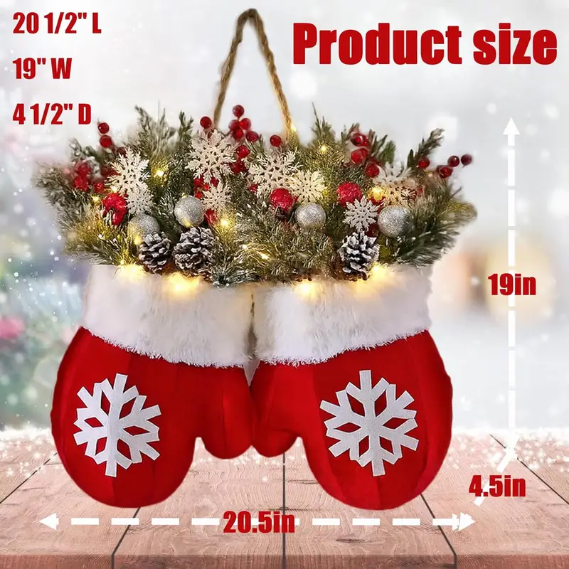 🎅Funkelnder, steckerloser, selbstleuchtender Weihnachtshandschuhkranz🎄